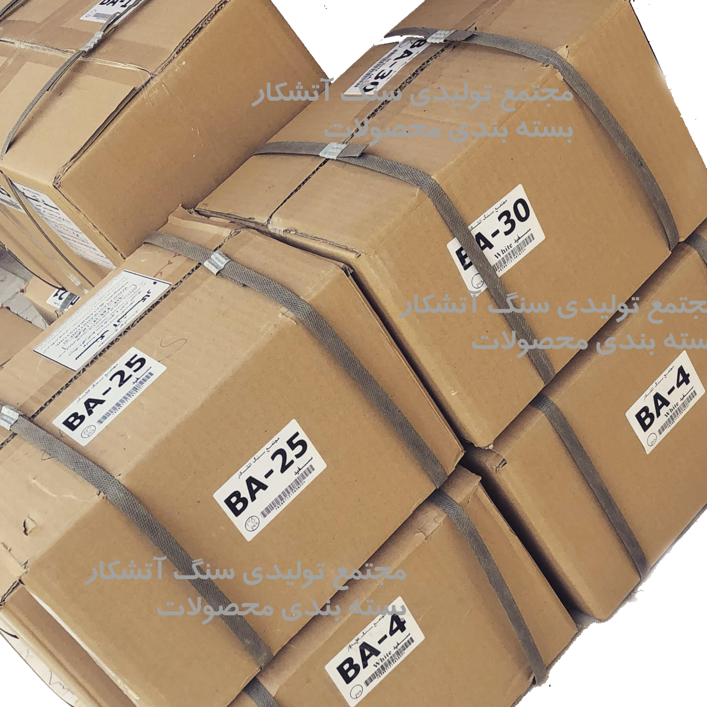 در مجتمع سنگ آتشکار در جهت احترام به مصرف کننده و ارزش قائل شدن برای  محصولات تولیدی در  مجموعه سنگ اتشکار کلیه محصولات به صورت کاملا حرفه ایی و اصولی بسته بندی میگردد . برخی تصاویر بسته بندی محصولات در زیر آورده شده است .